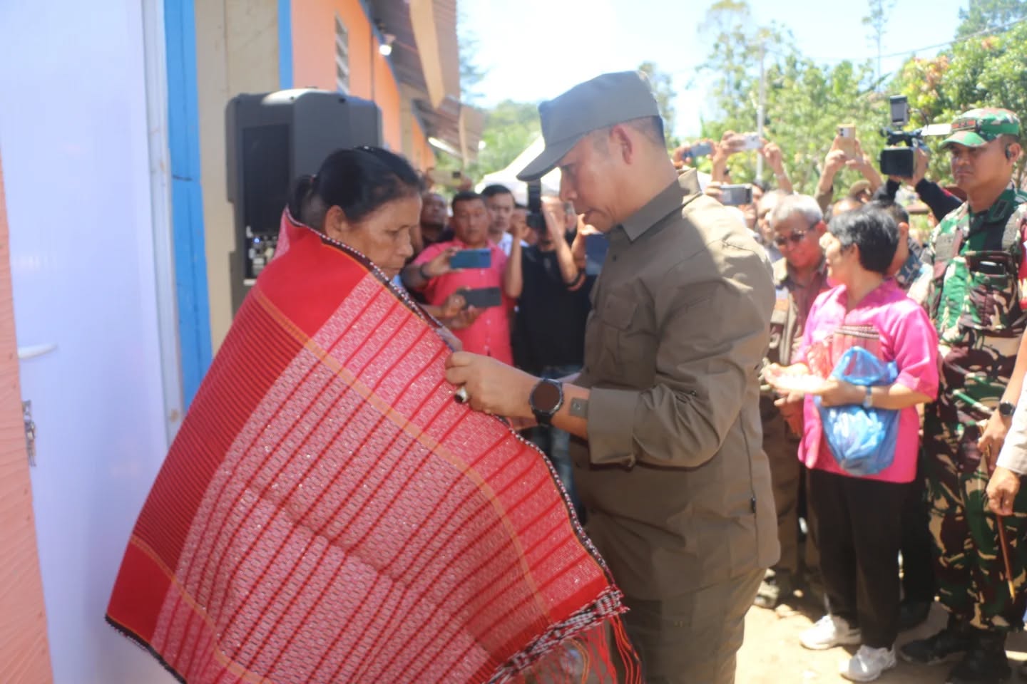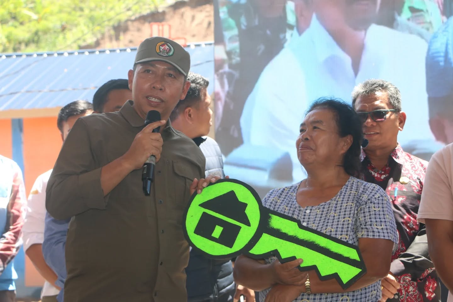Pada agenda yang digelar di Desa Sibalanga Kecamatan Adian Koting, Bupati Jonius didampingi Direktur Pengembangan Strategi Penanggulangan Bencana BNPB Agus Wibowo menyerahkan kunci rumah siap huni kepada tiga warga perwakilan dari total 40 unit Huntara untuk warga penyintas bencana alam banjir dan longsor.