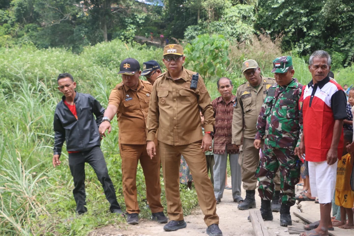 Bupati Tapanuli Utara Dr. Jonius Taripar Parsaoran Hutabarat, S.Si., M.Si.bersama sejumlah pimpinan perangkat daerah teknis, Camat Garoga, serta Kepala Desa Lontung Jae II meninjau langsung kondisi jembatan yang putus akibat bencana alam di Dusun Hadataran, Desa Lontung Jae II, Kecamatan Garoga, pada Senin (9/2/2026).