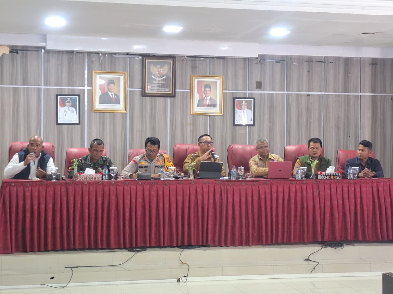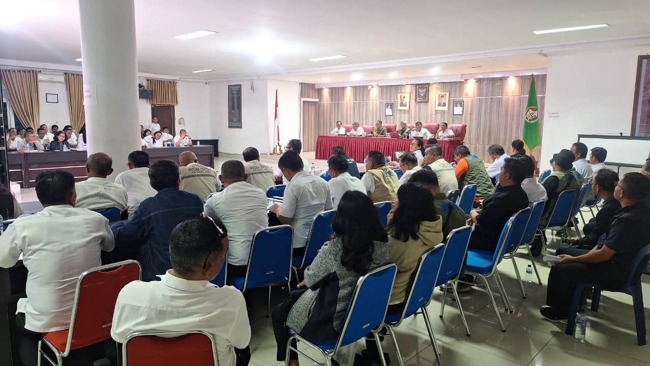Bupati Tapanuli Utara memimpin rapat evaluasi penanganan bencana pada 1 Desember 2025 di Aula Martua. Rapat ini dihadiri pimpinan daerah, TNI, Polri, dan pejabat eselon.