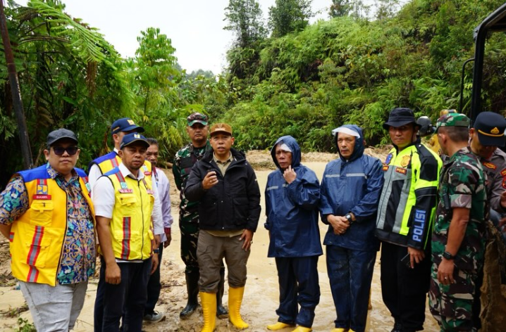 Bupati Tapanuli Utara Dr. Jonius Taripar Parsaoran Hutabarat meninjau longsor di Adiankoting pada Rabu, 26 November 2025. Peninjauan dilakukan untuk memastikan penanganan darurat berlangsung cepat dan terkoordinasi.
