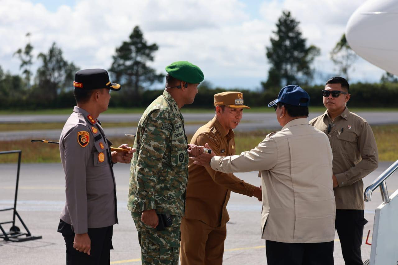 Bupati Taput menyambut kedatangan Presiden di Bandara Silangit pada Senin, 01 Desember 2025. Penyambutan dilakukan bersama Kapolres dan Dandim.
