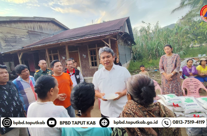 Wakil Bupati Tapanuli Utara, Dr. Deni Lumbantoruan, M.Eng, mewakili pemerintah Kabupaten Tapanuli Utara menyerahkan langsung bantuan kepada warga terdampak banjir di Desa Parsaoran Samosir Kecamatan Pahae jae pada tanggal 20 April 2025.